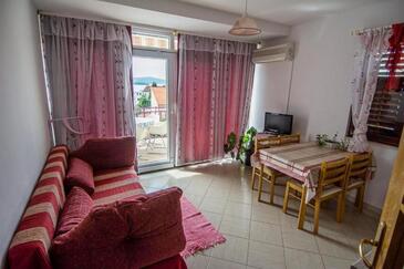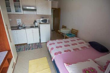 Az Apartman 4 főt tud fogadni. Az ágyak a/az 1 hálószobában, és a nappaliban/ben vannak, melynek méretei 35m2. A forró nyári estéket a vendégek saját teraszukon élvezhetik. Az apartmanból tengerre néző kilátás nyílik. A közös barbecue-helyet a vendég szabadon használhatja. A szállásegységbe lehetséges háziállatot hozni felár ellenében.
