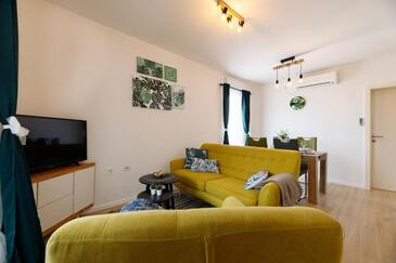Az Apartman 4 főt tud fogadni. Az ágyak a/az 2 hálószobában vannak, melynek méretei 50m2. A forró nyári estéket a vendégek saját teraszukon élvezhetik. Az apartmanból tengerre néző kilátás nyílik.