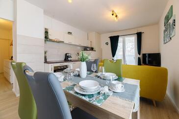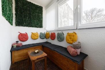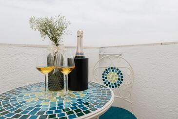 Az Apartman 4 főt tud fogadni. Az ágyak a/az 2 hálószobában vannak, melynek méretei 50m2. A forró nyári estéket a vendégek saját teraszukon élvezhetik. Az apartmanból tengerre néző kilátás nyílik.