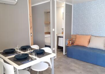 Az Apartman 5 főt tud fogadni. Az ágyak a/az 2 hálószobában, és a nappaliban/ben vannak, melynek méretei 30m2. A forró nyári estéket a vendégek saját teraszukon élvezhetik. A teljes élvezet és kikapcsolódás érdekében van saját barbecue hely is, csakis e szálláshely vendégei számára. A szállásegységbe lehetséges háziállatot hozni felár ellenében.