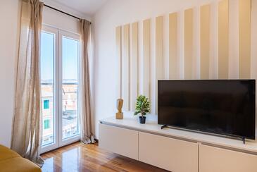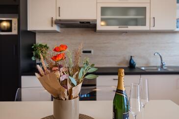 Az Apartman 6 főt tud fogadni. Az ágyak a/az 2 hálószobában, és a nappaliban/ben vannak, melynek méretei 46m2. A forró nyári estéket a vendégek saját balkonukon élvezhetik. Az apartmanból tengerre néző kilátás nyílik.