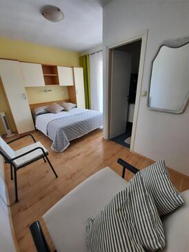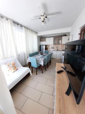 Az Apartman 7 főt tud fogadni. Az ágyak a/az 3 hálószobában vannak, melynek méretei 85m2. A forró nyári estéket a vendégek saját balkonukon élvezhetik. Az apartmanból tengerre néző kilátás nyílik. A közös barbecue-helyet a vendég szabadon használhatja.
