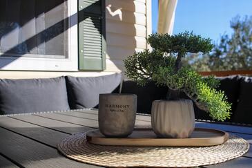 Az Apartman 4 főt tud fogadni. Az ágyak a/az 2 hálószobában vannak, melynek méretei 32m2. A forró nyári estéket a vendégek saját teraszukon élvezhetik. A teljes élvezet és kikapcsolódás érdekében van saját barbecue hely is, csakis e szálláshely vendégei számára. A szállásegységbe lehetséges háziállatot hozni felár ellenében.
