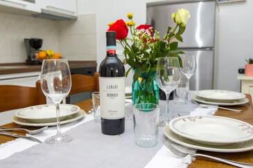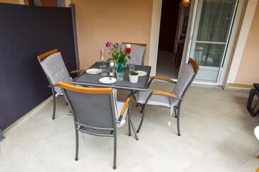 Az Apartman 4 főt tud fogadni. Az ágyak a/az 1 hálószobában, és a nappaliban/ben vannak, melynek méretei 28m2. A forró nyári estéket a vendégek saját teraszukon élvezhetik. Az apartmanból tengerre néző kilátás nyílik. A szállásegységbe lehetséges háziállatot hozni felár ellenében.