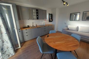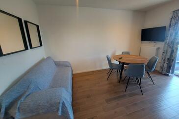 Az Apartman 4 főt tud fogadni. Az ágyak a/az 1 hálószobában, és a nappaliban/ben vannak, melynek méretei 30m2. A forró nyári estéket a vendégek saját balkonukon élvezhetik. Az apartmanból tengerre néző kilátás nyílik. A közös barbecue-helyet a vendég szabadon használhatja.