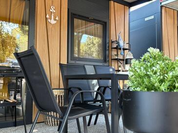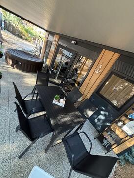 Az Apartman 5 főt tud fogadni. Az ágyak a/az 2 hálószobában, és a nappaliban/ben vannak, melynek méretei 30m2. A forró nyári estéket a vendégek saját teraszukon élvezhetik. A teljes élvezet és kikapcsolódás érdekében van saját barbecue hely is, csakis e szálláshely vendégei számára.