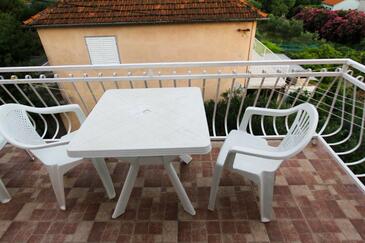 Az Apartman 5 főt tud fogadni. Az ágyak a/az 2 hálószobában, és a nappaliban/ben vannak, melynek méretei 52m2. A forró nyári estéket a vendégek saját balkonukon élvezhetik. Az apartmanból tengerre néző kilátás nyílik. A közös barbecue-helyet a vendég szabadon használhatja.