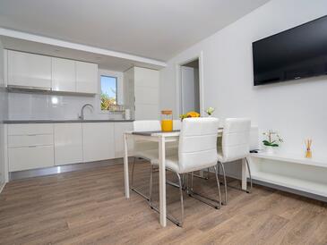 Az Apartman 6 főt tud fogadni. Az ágyak a/az 2 hálószobában, és a nappaliban/ben vannak, melynek méretei 40m2. A forró nyári estéket a vendégek saját teraszukon élvezhetik. Az apartmanból tengerre néző kilátás nyílik. A teljes élvezet és kikapcsolódás érdekében van saját barbecue hely is, csakis e szálláshely vendégei számára. A szállásegységbe lehetséges háziállatot hozni felár ellenében.