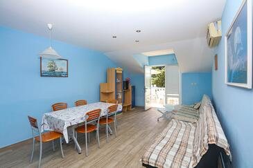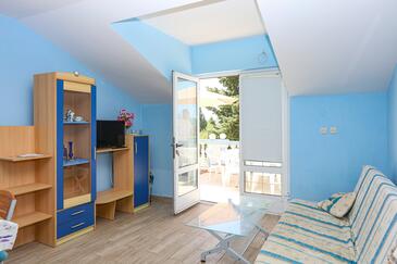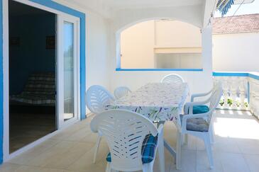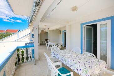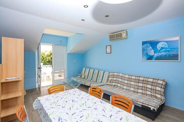 Az Apartman 6 főt tud fogadni. Az ágyak a/az 2 hálószobában, és a nappaliban/ben vannak, melynek méretei 60m2. A forró nyári estéket a vendégek saját teraszukon élvezhetik. Az apartmanból tengerre néző kilátás nyílik. A közös barbecue-helyet a vendég szabadon használhatja. A szállásegységbe lehetséges háziállatot hozni felár ellenében.
