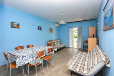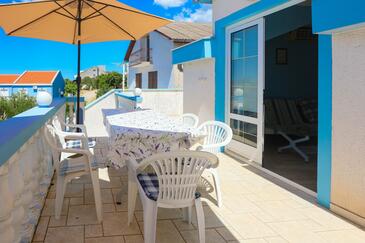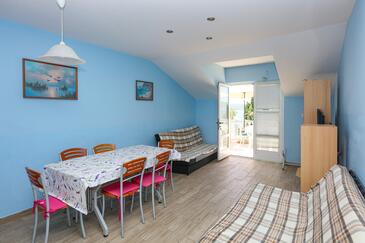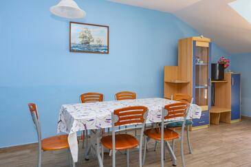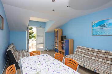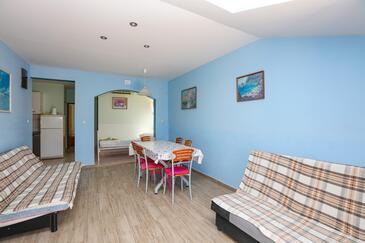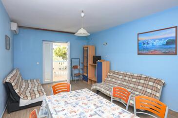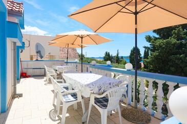 Az Apartman 6 főt tud fogadni. Az ágyak a/az 2 hálószobában, és a nappaliban/ben vannak, melynek méretei 60m2. A forró nyári estéket a vendégek saját teraszukon élvezhetik. Az apartmanból tengerre néző kilátás nyílik. A közös barbecue-helyet a vendég szabadon használhatja. A szállásegységbe lehetséges háziállatot hozni felár ellenében.