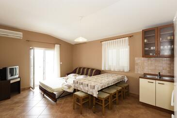 Az Apartman 8 főt tud fogadni. Az ágyak a/az 2 hálószobában, és a nappaliban/ben vannak, melynek méretei 58m2. A forró nyári estéket a vendégek saját teraszukon élvezhetik. Az apartmanból tengerre néző kilátás nyílik. A közös barbecue-helyet a vendég szabadon használhatja.