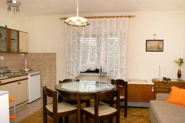 Az Apartman 5 főt tud fogadni. Az ágyak a/az 2 hálószobában, és a nappaliban/ben vannak, melynek méretei 50m2. A forró nyári estéket a vendégek saját teraszukon élvezhetik. Az apartmanból tengerre néző kilátás nyílik. A közös barbecue-helyet a vendég szabadon használhatja. A szállásegységbe lehetséges háziállatot hozni felár ellenében.