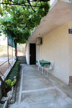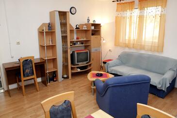 Az Apartman 5 főt tud fogadni. Az ágyak a/az 2 hálószobában, és a nappaliban/ben vannak, melynek méretei 50m2. A forró nyári estéket a vendégek saját teraszukon élvezhetik. Az apartmanból tengerre néző kilátás nyílik. A közös barbecue-helyet a vendég szabadon használhatja. A szállásegységbe lehetséges háziállatot hozni felár ellenében.