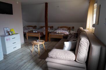 Az Stúdió 4 főt tud fogadni. Az ágyak a/az 1 hálószobában vannak, melynek méretei 34m2. A forró nyári estéket a vendégek saját teraszukon élvezhetik. A közös barbecue-helyet a vendég szabadon használhatja.