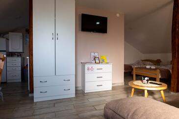 Az Stúdió 4 főt tud fogadni. Az ágyak a/az 1 hálószobában vannak, melynek méretei 34m2. A forró nyári estéket a vendégek saját teraszukon élvezhetik. A közös barbecue-helyet a vendég szabadon használhatja.