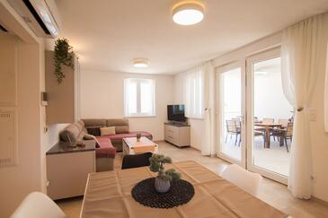 Az Apartman 6 főt tud fogadni. Az ágyak a/az 3 hálószobában vannak, melynek méretei 77m2. A forró nyári estéket a vendégek saját teraszukon élvezhetik. Az apartmanból tengerre néző kilátás nyílik. A teljes élvezet és kikapcsolódás érdekében van saját barbecue hely is, csakis e szálláshely vendégei számára.