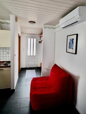 Az Apartman 2 főt tud fogadni. Az ágyak a/az 1 hálószobában vannak, melynek méretei 31m2. A forró nyári estéket a vendégek saját balkonukon élvezhetik. Az apartmanból tengerre néző kilátás nyílik. A közös barbecue-helyet a vendég szabadon használhatja.