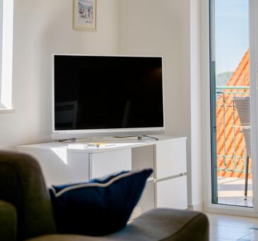 Az Apartman 4 főt tud fogadni. Az ágyak a/az 1 hálószobában, és a nappaliban/ben vannak, melynek méretei 48m2. A forró nyári estéket a vendégek saját teraszukon élvezhetik. A közös barbecue-helyet a vendég szabadon használhatja. A vendégek itt tartózkodásuk ideje alatt használhatják a közös medencét.