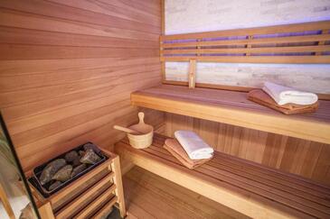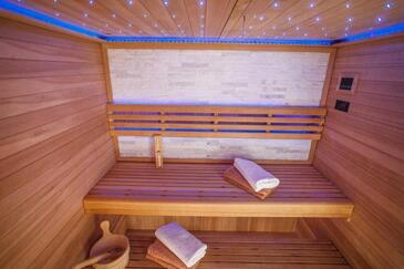 Az Ház 10 főt tud fogadni. Az ágyak a/az 4 hálószobában, és a nappaliban/ben vannak, melynek méretei 140m2. A forró nyári estéket a vendégek saját teraszukon élvezhetik. A házból tengerre néző kilátás nyílik. A teljes élvezet és kikapcsolódás érdekében van saját barbecue hely is, csakis e szálláshely vendégei számára. A vendégek itt tartózkodásuk ideje alatt kikapcsolódás céljából használhatják a magán medencét. A szállásegységbe lehetséges háziállatot hozni, ennek költségét a foglalási díj tartalmazza.