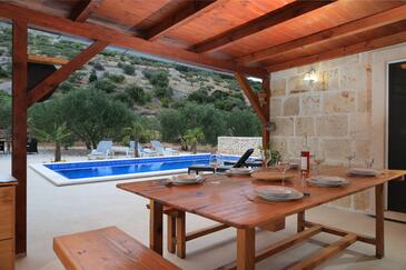 Az Ház 6 főt tud fogadni. Az ágyak a/az 3 hálószobában vannak, melynek méretei 57m2. A forró nyári estéket a vendégek saját teraszukon élvezhetik. A teljes élvezet és kikapcsolódás érdekében van saját barbecue hely is, csakis e szálláshely vendégei számára. A vendégek itt tartózkodásuk ideje alatt kikapcsolódás céljából használhatják a magán medencét. A szállásegységbe lehetséges háziállatot hozni felár ellenében.