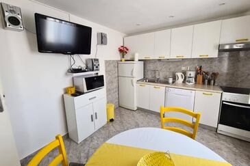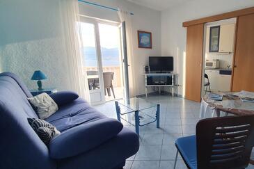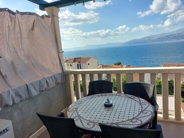 Az Apartman 3 főt tud fogadni. Az ágyak a/az 1 hálószobában, és a nappaliban/ben vannak, melynek méretei 43m2. A forró nyári estéket a vendégek saját teraszukon élvezhetik. Az apartmanból tengerre néző kilátás nyílik. A közös barbecue-helyet a vendég szabadon használhatja.