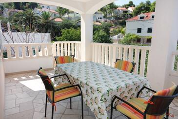 Az Apartman 6 főt tud fogadni. Az ágyak a/az 3 hálószobában vannak, melynek méretei 54m2. A forró nyári estéket a vendégek saját teraszukon élvezhetik. Az apartmanból tengerre néző kilátás nyílik. A közös barbecue-helyet a vendég szabadon használhatja.