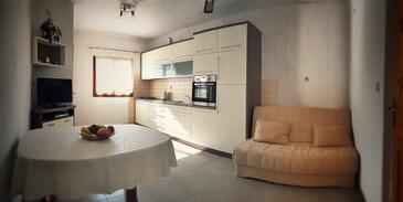 Az Apartman 3 főt tud fogadni. Az ágyak a/az 1 hálószobában, és a étkezőban/ben vannak, melynek méretei 29m2. A forró nyári estéket a vendégek saját teraszukon élvezhetik. Az apartmanból tengerre néző kilátás nyílik. A közös barbecue-helyet a vendég szabadon használhatja. A szállásegységbe lehetséges háziállatot hozni felár ellenében.