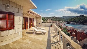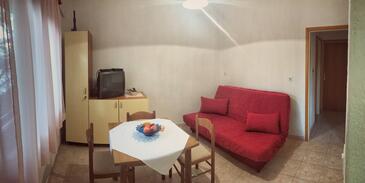 Az Apartman 3 főt tud fogadni. Az ágyak a/az 1 hálószobában, és a étkezőban/ben vannak, melynek méretei 29m2. A forró nyári estéket a vendégek saját teraszukon élvezhetik. Az apartmanból tengerre néző kilátás nyílik. A közös barbecue-helyet a vendég szabadon használhatja. A szállásegységbe lehetséges háziállatot hozni felár ellenében.