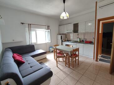 Az Apartman 2 főt tud fogadni. Az ágyak a/az 1 hálószobában vannak, melynek méretei 35m2. Az apartmanból tengerre néző kilátás nyílik. A közös barbecue-helyet a vendég szabadon használhatja. A lefoglalt szállásegység közös teraszt használ..