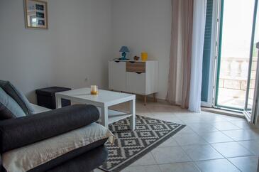 Az Apartman 3 főt tud fogadni. Az ágyak a/az 1 hálószobában, és a nappaliban/ben vannak, melynek méretei 48m2. A forró nyári estéket a vendégek saját balkonukon élvezhetik. Az apartmanból tengerre néző kilátás nyílik. A közös barbecue-helyet a vendég szabadon használhatja.
