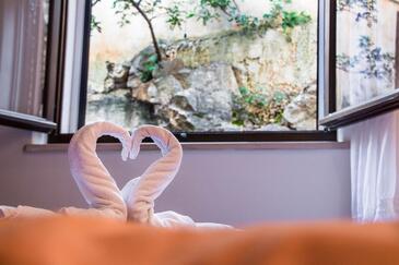 Az Apartman 5 főt tud fogadni. Az ágyak a/az 2 hálószobában, és a nappaliban/ben vannak, melynek méretei 58m2. A forró nyári estéket a vendégek saját teraszukon élvezhetik. Az apartmanból tengerre néző kilátás nyílik. A közös barbecue-helyet a vendég szabadon használhatja.