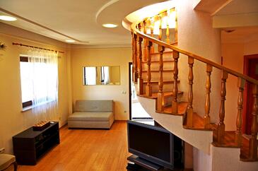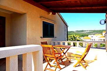 Az Apartman 8 főt tud fogadni. Az ágyak a/az 4 hálószobában vannak, melynek méretei 143m2. A forró nyári estéket a vendégek saját teraszukon élvezhetik. Az apartmanból tengerre néző kilátás nyílik. A közös barbecue-helyet a vendég szabadon használhatja. A szállásegységbe lehetséges háziállatot hozni, ennek költségét a foglalási díj tartalmazza.