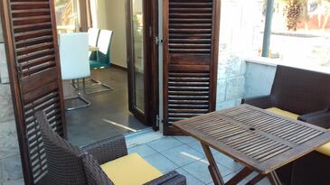 Az Apartman 4 főt tud fogadni. Az ágyak a/az 2 hálószobában vannak, melynek méretei 60m2. A forró nyári estéket a vendégek saját teraszukon élvezhetik. A közös barbecue-helyet a vendég szabadon használhatja.