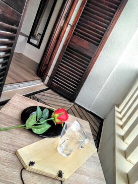 Az Apartman 4 főt tud fogadni. Az ágyak a/az 2 hálószobában vannak, melynek méretei 60m2. A forró nyári estéket a vendégek saját teraszukon élvezhetik. A közös barbecue-helyet a vendég szabadon használhatja.