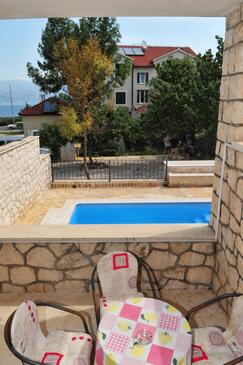 Az Apartman 7 főt tud fogadni. Az ágyak a/az 3 hálószobában vannak, melynek méretei 72m2. A forró nyári estéket a vendégek saját teraszukon élvezhetik. Az apartmanból tengerre néző kilátás nyílik. A közös barbecue-helyet a vendég szabadon használhatja. A vendégek itt tartózkodásuk ideje alatt kikapcsolódás céljából használhatják a magán medencét. A szállásegységbe lehetséges háziállatot hozni felár ellenében.