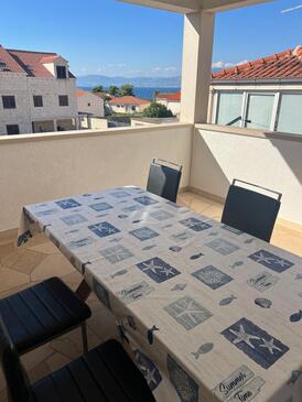Az Apartman 6 főt tud fogadni. Az ágyak a/az 3 hálószobában vannak, melynek méretei 75m2. A forró nyári estéket a vendégek saját teraszukon élvezhetik. Az apartmanból tengerre néző kilátás nyílik. A közös barbecue-helyet a vendég szabadon használhatja.