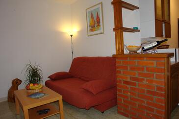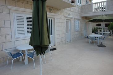 Az Apartman 5 főt tud fogadni. Az ágyak a/az 2 hálószobában, és a nappaliban/ben vannak, melynek méretei 45m2. A közös barbecue-helyet a vendég szabadon használhatja. A lefoglalt szállásegység közös teraszt használ..
