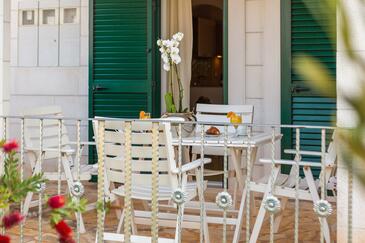 Az Apartman 8 főt tud fogadni. Az ágyak a/az 3 hálószobában, és a nappaliban/ben vannak, melynek méretei 68m2. A forró nyári estéket a vendégek saját teraszukon élvezhetik. Az apartmanból tengerre néző kilátás nyílik. A teljes élvezet és kikapcsolódás érdekében van saját barbecue hely is, csakis e szálláshely vendégei számára.