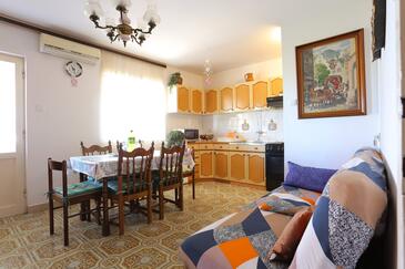Az Apartman 5 főt tud fogadni. Az ágyak a/az 2 hálószobában, és a nappaliban/ben vannak, melynek méretei 61m2. A forró nyári estéket a vendégek saját teraszukon élvezhetik. A közös barbecue-helyet a vendég szabadon használhatja. A szállásegységbe lehetséges háziállatot hozni, ennek költségét a foglalási díj tartalmazza.