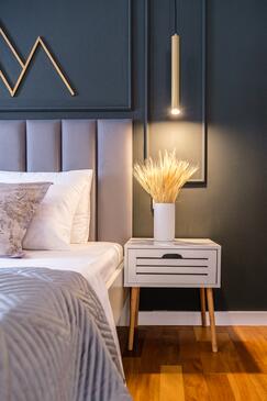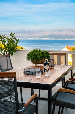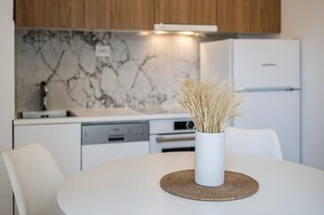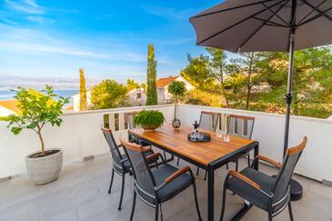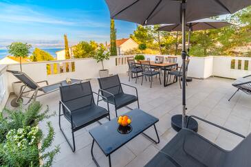 Az Apartman 6 főt tud fogadni. Az ágyak a/az 2 hálószobában, és a nappaliban/ben vannak, melynek méretei 75m2. A forró nyári estéket a vendégek saját teraszukon élvezhetik. Az apartmanból tengerre néző kilátás nyílik. A teljes élvezet és kikapcsolódás érdekében van saját barbecue hely is, csakis e szálláshely vendégei számára.