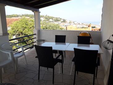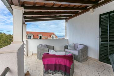 Az Apartman 6 főt tud fogadni. Az ágyak a/az 3 hálószobában vannak, melynek méretei 76m2. A forró nyári estéket a vendégek saját teraszukon élvezhetik. Az apartmanból tengerre néző kilátás nyílik. A közös barbecue-helyet a vendég szabadon használhatja. A szállásegységbe lehetséges háziállatot hozni felár ellenében.