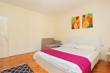 Az Apartman 6 főt tud fogadni. Az ágyak a/az 3 hálószobában vannak, melynek méretei 107m2. A forró nyári estéket a vendégek saját teraszukon élvezhetik. Az apartmanból tengerre néző kilátás nyílik. A közös barbecue-helyet a vendég szabadon használhatja. A szállásegységbe lehetséges háziállatot hozni, ennek költségét a foglalási díj tartalmazza.