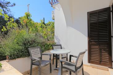 Az Apartman 6 főt tud fogadni. Az ágyak a/az 3 hálószobában vannak, melynek méretei 107m2. A forró nyári estéket a vendégek saját teraszukon élvezhetik. Az apartmanból tengerre néző kilátás nyílik. A közös barbecue-helyet a vendég szabadon használhatja. A szállásegységbe lehetséges háziállatot hozni, ennek költségét a foglalási díj tartalmazza.
