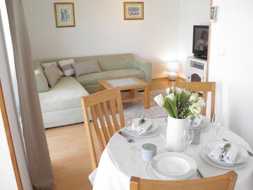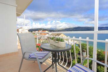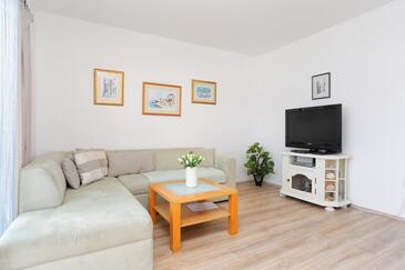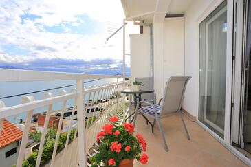 Az Apartman 6 főt tud fogadni. Az ágyak a/az 2 hálószobában, és a nappaliban/ben vannak, melynek méretei 42m2. A forró nyári estéket a vendégek saját balkonukon élvezhetik. Az apartmanból tengerre néző kilátás nyílik. A közös barbecue-helyet a vendég szabadon használhatja. A szállásegységbe lehetséges háziállatot hozni felár ellenében.