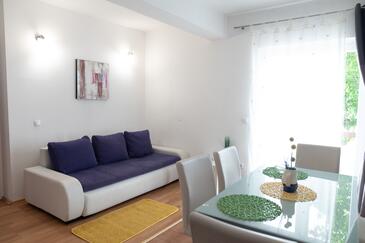 Az Apartman 3 főt tud fogadni. Az ágyak a/az 1 hálószobában, és a nappaliban/ben vannak, melynek méretei 35m2. A forró nyári estéket a vendégek saját balkonukon élvezhetik. Az apartmanból tengerre néző kilátás nyílik. A közös barbecue-helyet a vendég szabadon használhatja. A lefoglalt szállásegység közös teraszt használ..