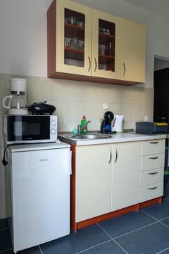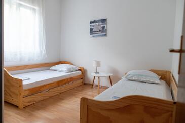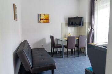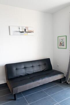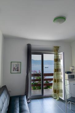 Az Apartman 3 főt tud fogadni. Az ágyak a/az 1 hálószobában, és a nappaliban/ben vannak, melynek méretei 35m2. A forró nyári estéket a vendégek saját balkonukon élvezhetik. Az apartmanból tengerre néző kilátás nyílik. A közös barbecue-helyet a vendég szabadon használhatja. A lefoglalt szállásegység közös teraszt használ..