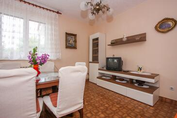 Az Apartman 5 főt tud fogadni. Az ágyak a/az 2 hálószobában vannak, melynek méretei 58m2. A forró nyári estéket a vendégek saját teraszukon élvezhetik. Az apartmanból tengerre néző kilátás nyílik. A közös barbecue-helyet a vendég szabadon használhatja.