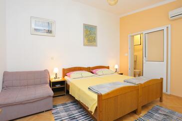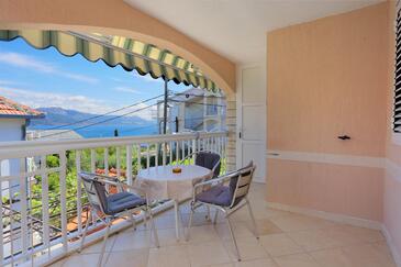 Az Apartman 4 főt tud fogadni. Az ágyak a/az 2 hálószobában vannak, melynek méretei 47m2. A forró nyári estéket a vendégek saját teraszukon élvezhetik. Az apartmanból tengerre néző kilátás nyílik. A közös barbecue-helyet a vendég szabadon használhatja.