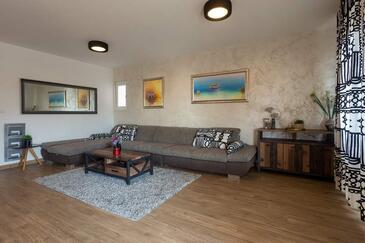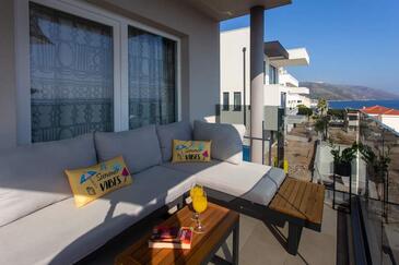 Az Apartman 6 főt tud fogadni. Az ágyak a/az 2 hálószobában, és a nappaliban/ben vannak, melynek méretei 80m2. A forró nyári estéket a vendégek saját teraszukon élvezhetik. Az apartmanból tengerre néző kilátás nyílik. A közös barbecue-helyet a vendég szabadon használhatja. A vendégek itt tartózkodásuk ideje alatt használhatják a közös medencét.
