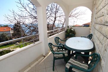 Az Apartman 5 főt tud fogadni. Az ágyak a/az 2 hálószobában, és a nappaliban/ben vannak, melynek méretei 41m2. A forró nyári estéket a vendégek saját teraszukon élvezhetik. Az apartmanból tengerre néző kilátás nyílik. A közös barbecue-helyet a vendég szabadon használhatja. A szállásegységbe lehetséges háziállatot hozni felár ellenében.